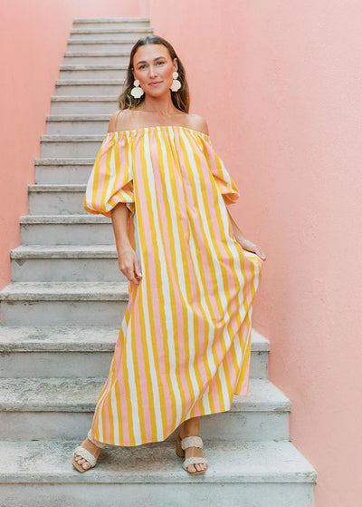 Sunkissed Stripe Off-Shoulder Ace Dress