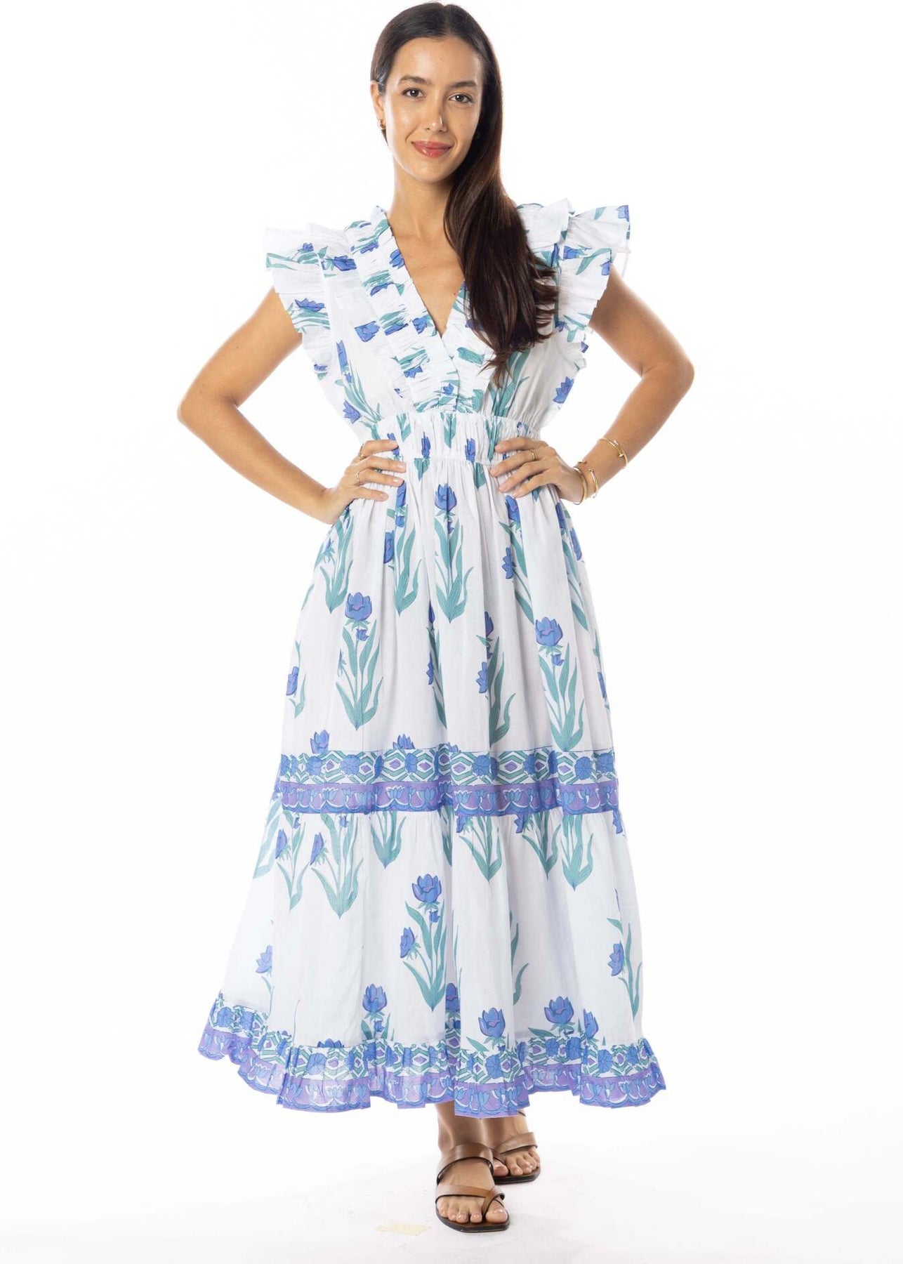 This best seller Bindu dress has a tiered skirt, elastic waist, playful sleeves and an intricate ruching along the neckline. A flattering classic piece that will stay in style through time.
