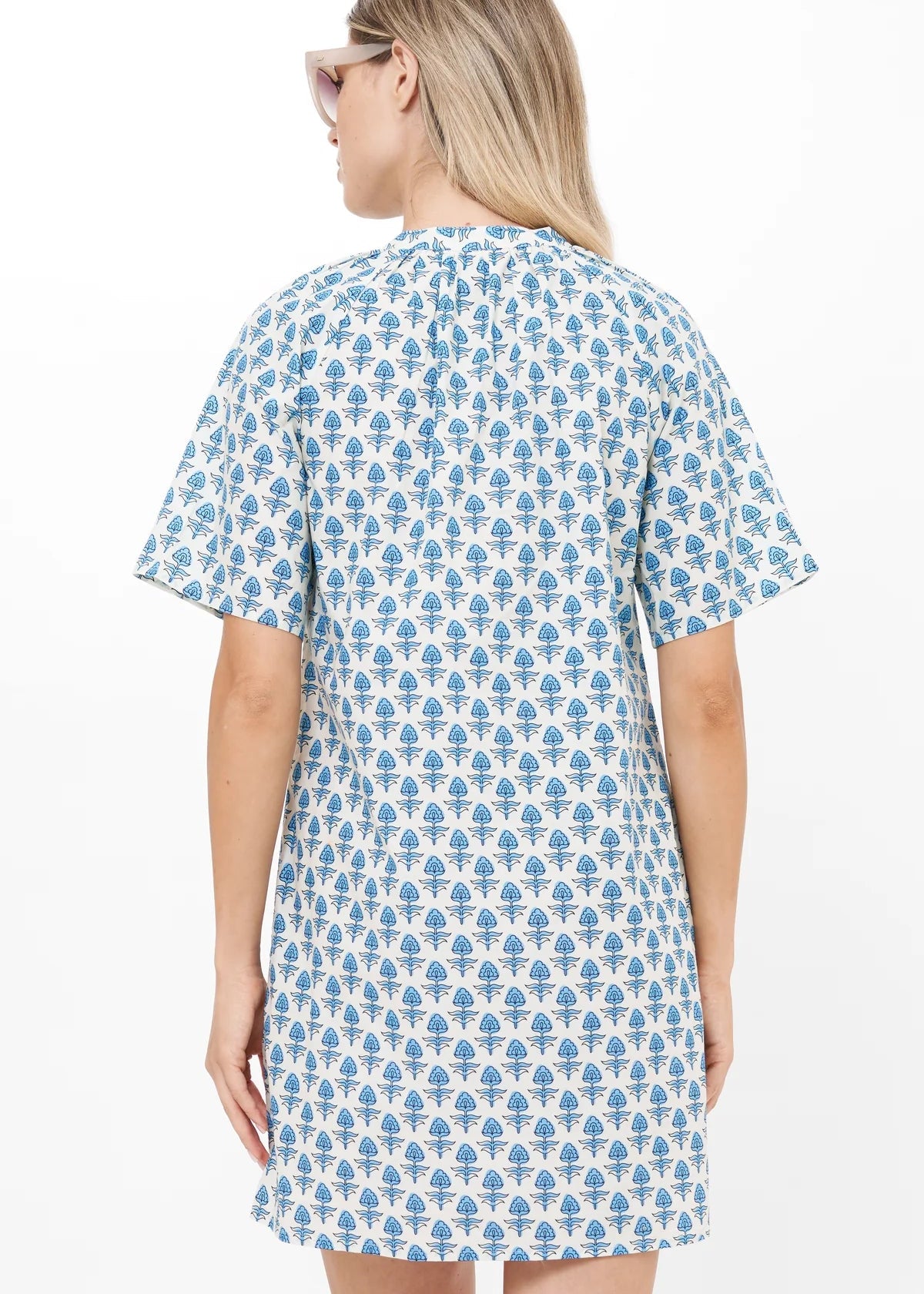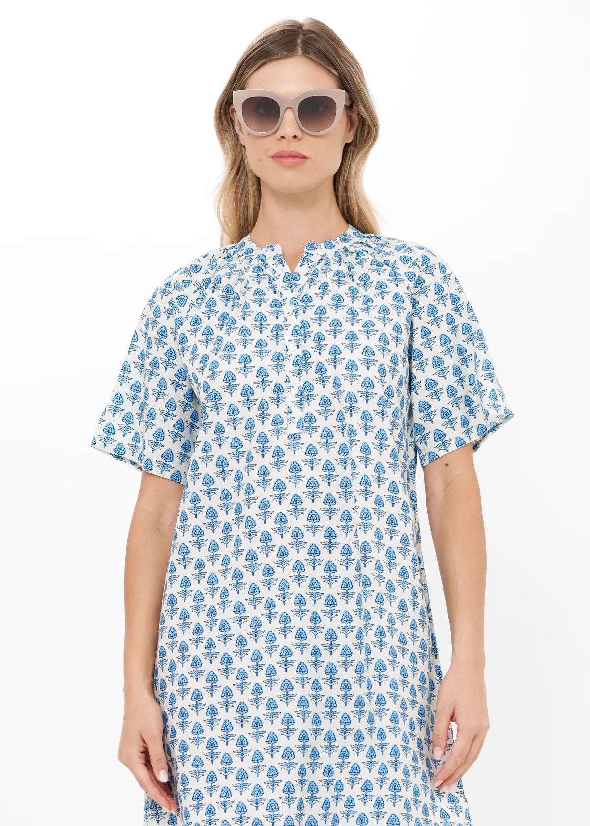 Refreshing blue florals prints applied by hand in the traditional block printing process on to soft and semi-structured cotton poplin complete this polished look.
