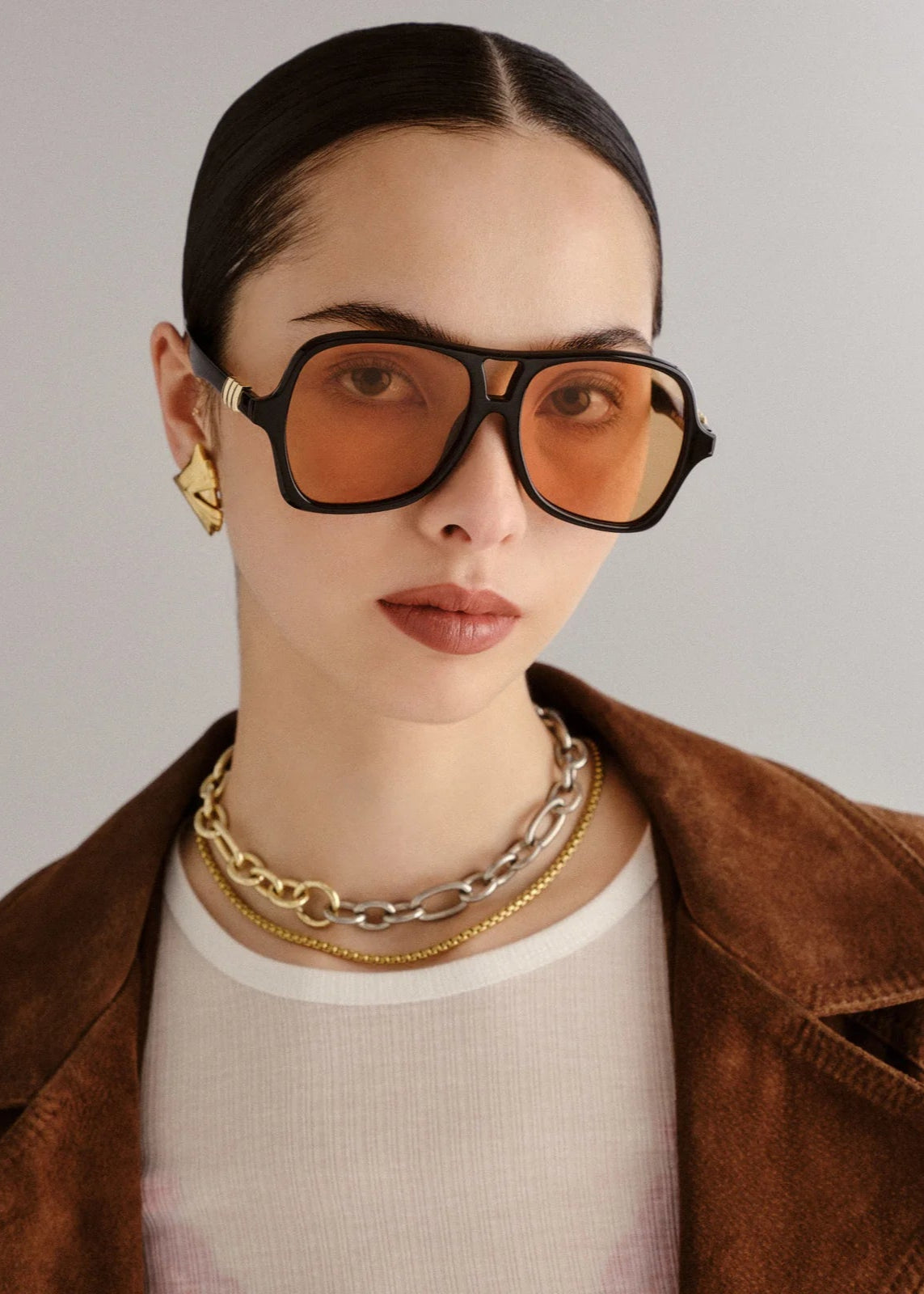Embrace vintage appeal with our FORTUNE TELLER aviator sunglasses. Featuring a 70s-inspired silhouette and unique contours, these oversized sunglasses offer a flattering unisex fit. With bold frame detailing and refined metal accents, they deliver a striking yet effortless look.