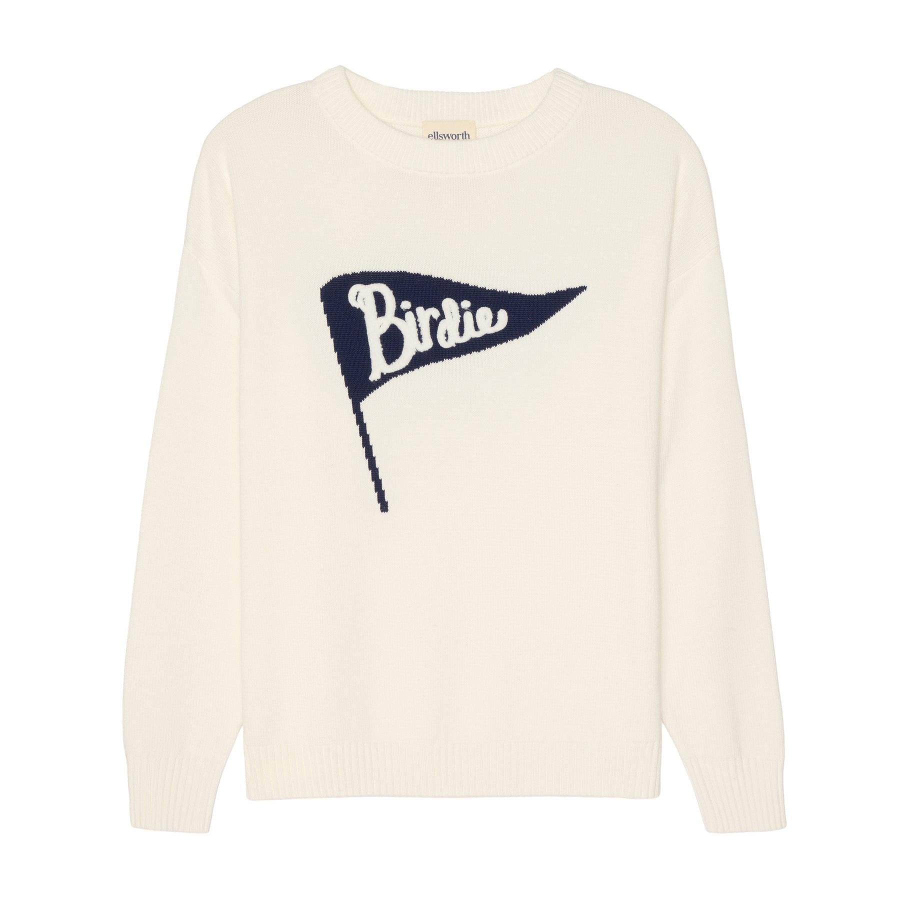 A perfectly oversized knit with a pennant flag at the chest. Ribbed at the wrists and collar. Soft. Sporty. The sweater that plays as good as it looks.