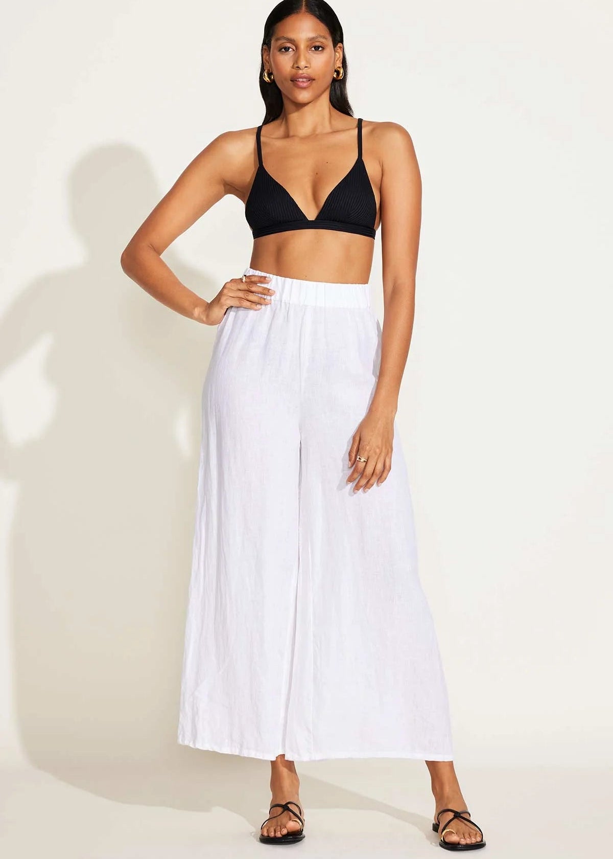 Linen, but make it chic. These high waisted pants offer a wide leg with an elastic waist for an easy, flattering fit – every time. Made from 100% Linen. This breathable material is earth friendly. We recommend sizing down for a more silhouette fit.